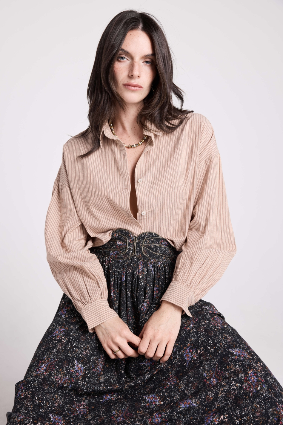 KLAUS est une chemise rayée manches longues oversize au style casual chic et intemporel.