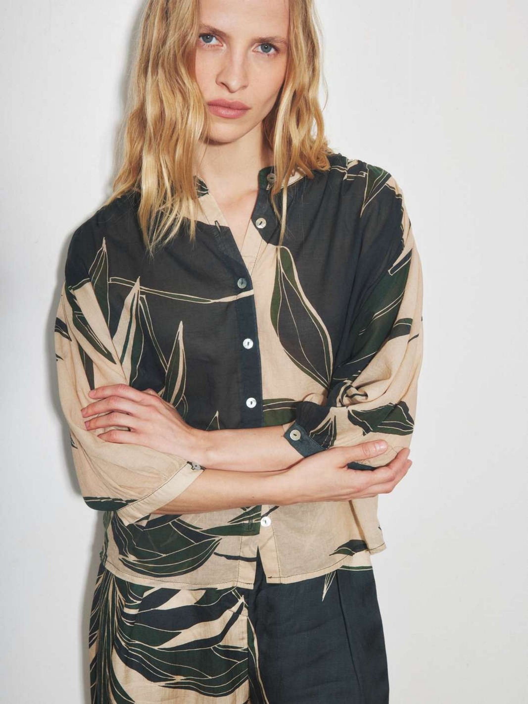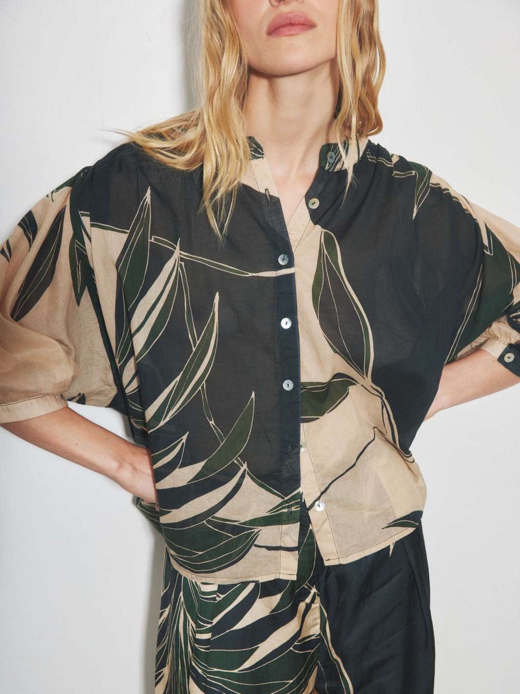 SCOOBA se distingue par sa coupe large et son imprimé feuilles XL qui apporte une dimension artistique à votre vestiaire. Ce pantalon fluide est doté d'une taille confortable et de poches latérales discrètes, alliant praticité et raffinement. Sa matière soyeuse et son mouvement aérien en font un modèle idéal pour composer des tenues de caractère.