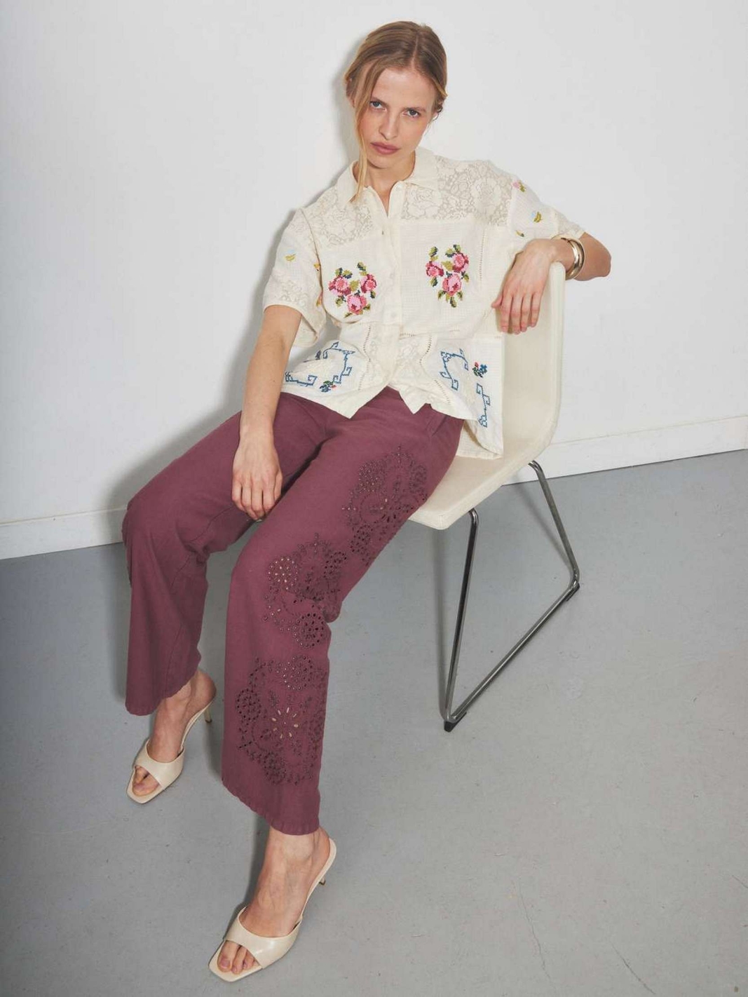 MACCABI est un pantalon large en coton de couleur Noir avec une taille ajustée et des broderies anglaises florales ajourées sur le côté de la jambe. Sa coupe droite et sa matière naturelle en font une pièce confortable et intemporelle.